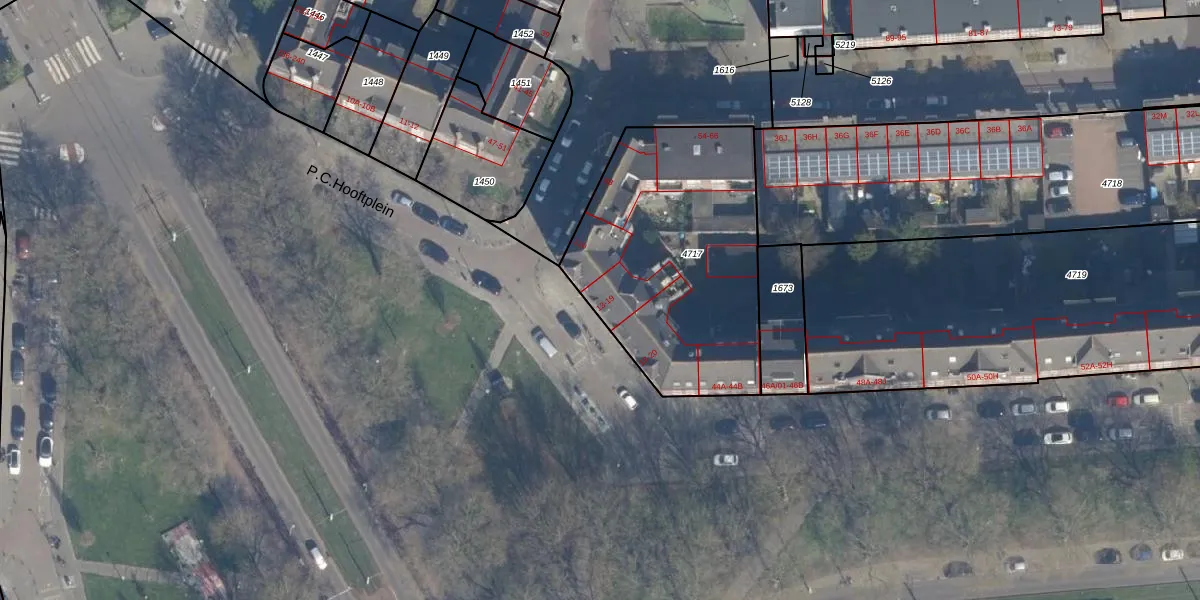 P.C.Hooftplein 14 is gelegen op kadastraal perceel RTD10Z4717. Deze kadastrale aanduiding is uniek en wordt gebruikt door het Kadaster om eigendomsrechten en andere zakelijke rechten vast te leggen. Het perceel maakt onderdeel uit van de kadastrale gemeente Rotterdam.