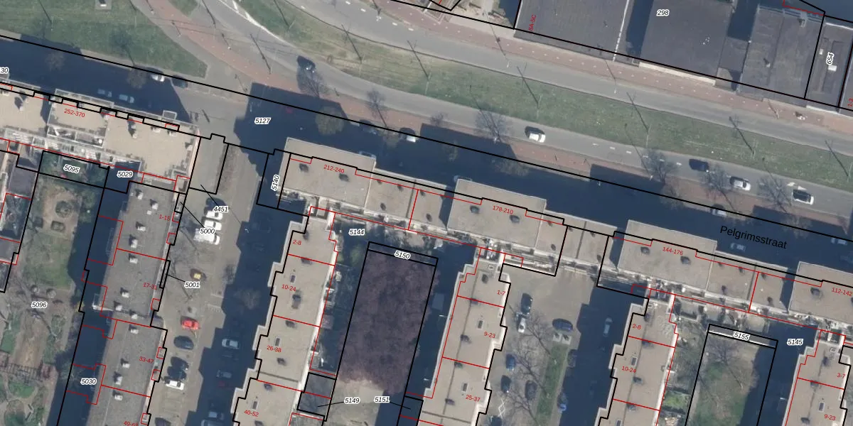 Pelgrimsstraat 210 is gelegen op kadastraal perceel DHV00H5144. Deze kadastrale aanduiding is uniek en wordt gebruikt door het Kadaster om eigendomsrechten en andere zakelijke rechten vast te leggen. Het perceel maakt onderdeel uit van de kadastrale gemeente Delfshaven.