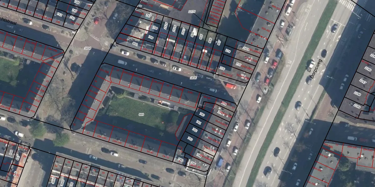 Het perceel waarop het adres ligt is CLS00-H-889. De afkorting 'CLS00' staat voor kadastrale gemeente Charlois. De oppervlakte van het perceel is 2257 m². Dat is groter dan gemiddeld in Charlois, waar de gemiddelde perceeloppervlakte op 1143,38 m² ligt. Het grootste perceel in de kadastrale gemeente is 1,09 km². Het kleinste perceel heeft een oppervlakte van 0 m². Op het perceel zijn 40 adressen aanwezig. In de Basisregistratie Kadaster (BRK) werden de grenzen van het perceel geregistreerd op 12-05-2003.