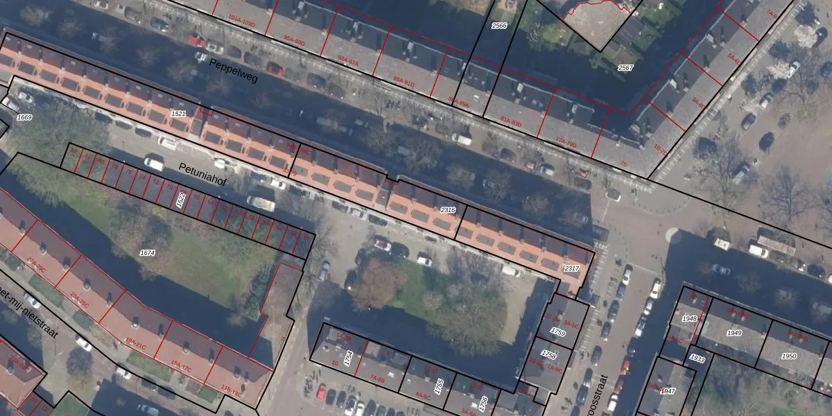Peppelweg 110-A is gelegen op kadastraal perceel SBK01C2316. Deze kadastrale aanduiding is uniek en wordt gebruikt door het Kadaster om eigendomsrechten en andere zakelijke rechten vast te leggen. Het perceel maakt onderdeel uit van de kadastrale gemeente Schiebroek.