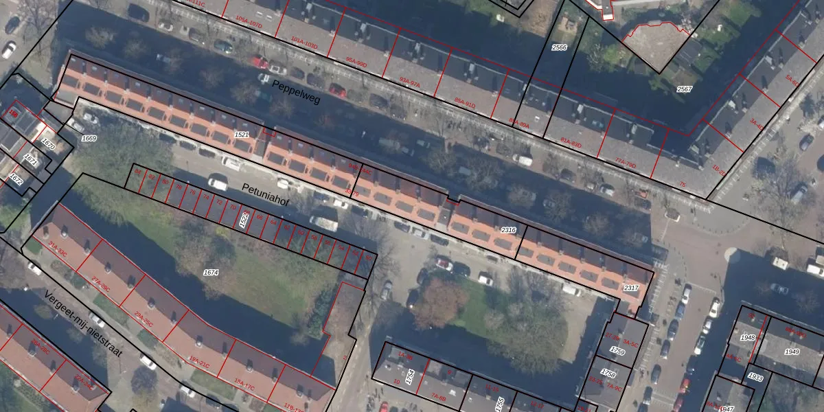 Peppelweg 114-A is gelegen op kadastraal perceel SBK01C2316. Deze kadastrale aanduiding is uniek en wordt gebruikt door het Kadaster om eigendomsrechten en andere zakelijke rechten vast te leggen. Het perceel maakt onderdeel uit van de kadastrale gemeente Schiebroek.