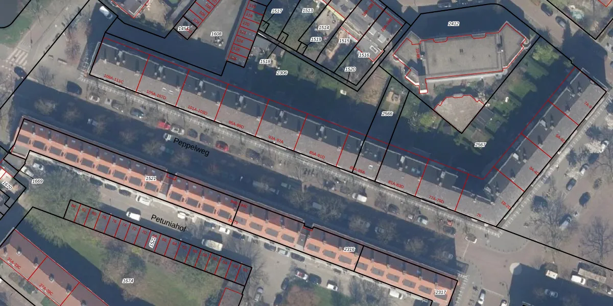 Peppelweg 91-A is gelegen op kadastraal perceel SBK01C2306. Deze kadastrale aanduiding is uniek en wordt gebruikt door het Kadaster om eigendomsrechten en andere zakelijke rechten vast te leggen. Het perceel maakt onderdeel uit van de kadastrale gemeente Schiebroek.