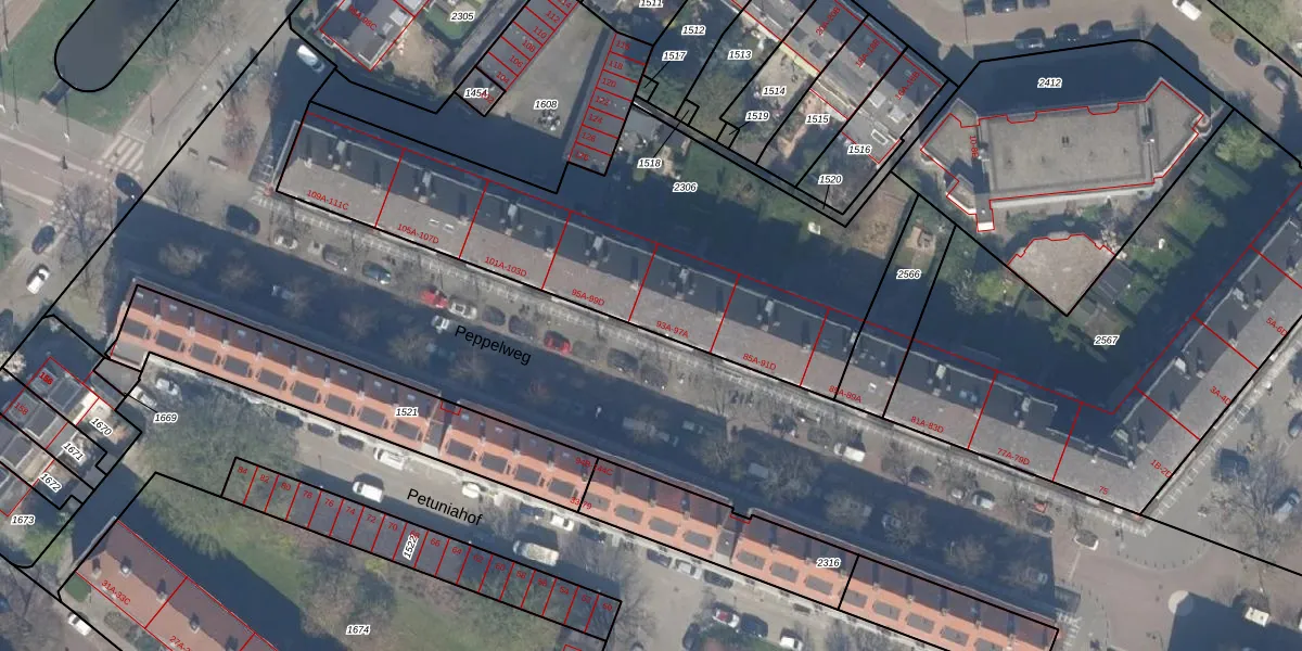 Peppelweg 97-A is gelegen op kadastraal perceel SBK01C2306. Deze kadastrale aanduiding is uniek en wordt gebruikt door het Kadaster om eigendomsrechten en andere zakelijke rechten vast te leggen. Het perceel maakt onderdeel uit van de kadastrale gemeente Schiebroek.