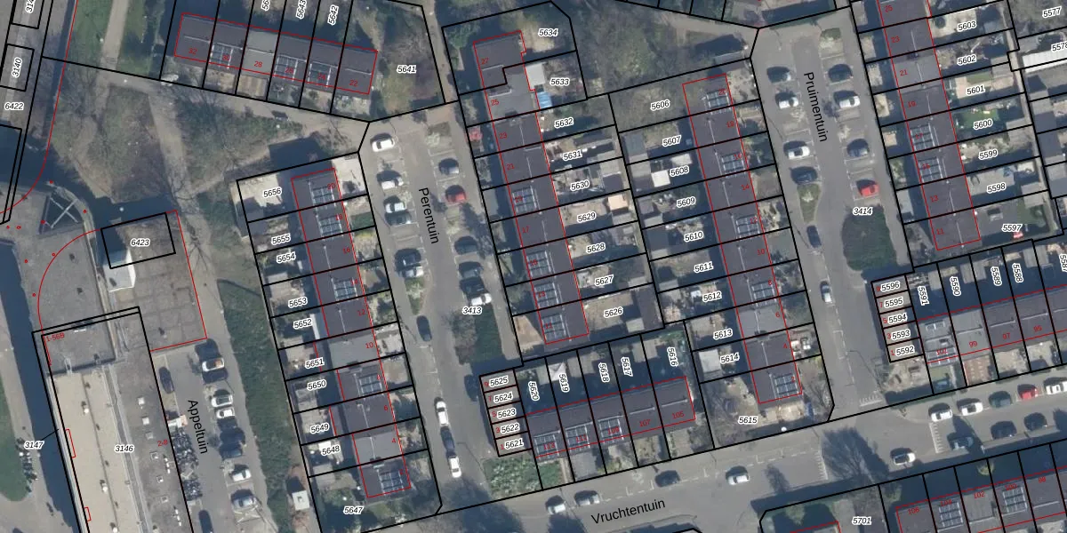 Gebruik de zoekbalk of klik op een perceel voor informatie over de adressen binnen dit perceel.
