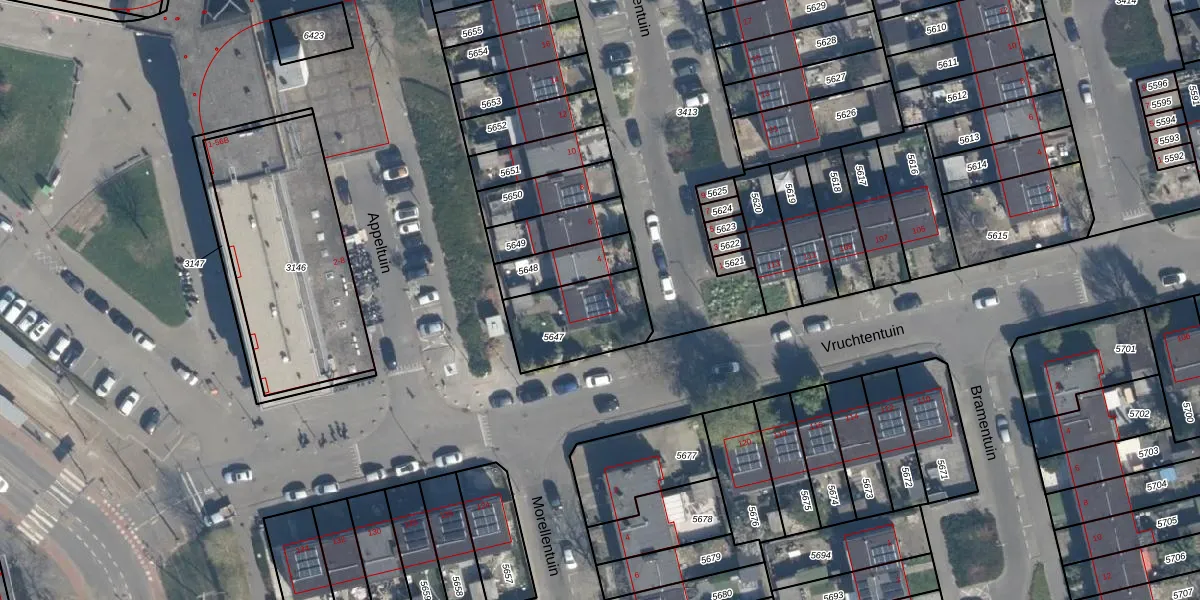 Gebruik de zoekbalk of klik op een perceel voor informatie over de adressen binnen dit perceel.