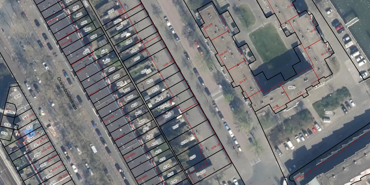 Gebruik de zoekbalk of klik op een perceel voor informatie over de adressen binnen dit perceel.