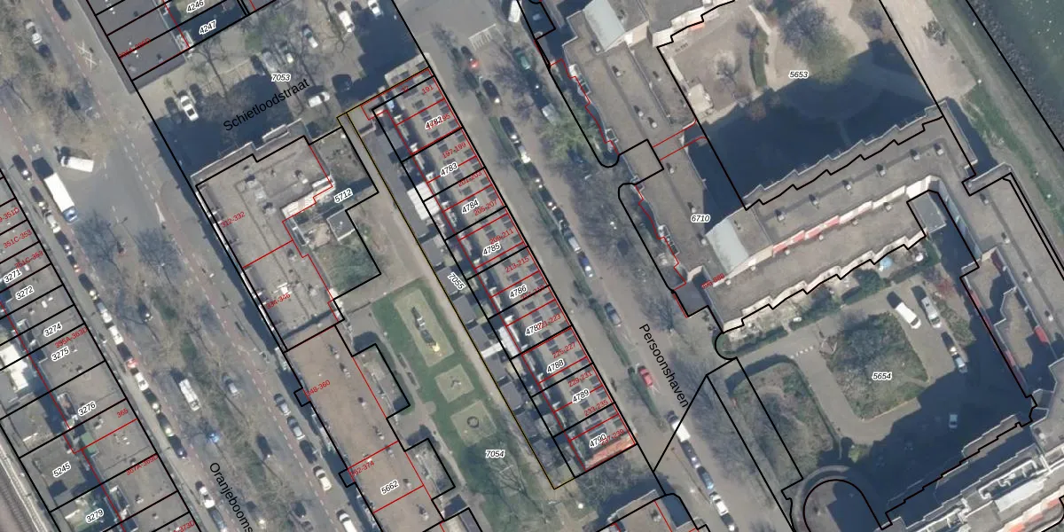 Het perceel waarop het adres ligt is RTD05-Q-4786. De afkorting 'RTD05' staat voor kadastrale gemeente Rotterdam. De gemiddelde perceelgrootte in Rotterdam is 1401,53 m². Dit perceel is kleiner: de perceeloppervlakte bedraagt 112 m². De grootste perceeloppervlakte in de kadastrale gemeente is 36,8 ha. De kleinste oppervlakte bedraagt 0 m². Er zijn 2 adressen aanwezig op het perceel. In de Basisregistratie Kadaster (BRK) werden de grenzen van het perceel geregistreerd op 29-01-2003.