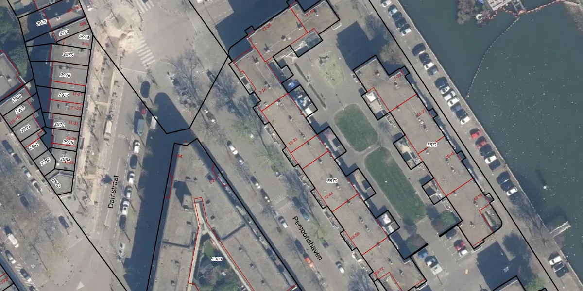 Het perceel waarop Persoonshaven 28 staat heeft een oppervlakte van 1827 m². Dit is een zeer groot perceel. De perceeloppervlakte wordt geregistreerd door het Kadaster. Gedetailleerde informatie over de maten van dit perceel kunt u vinden in het rapport Kadastrale kaart met maatvoering van Persoonshaven 28.