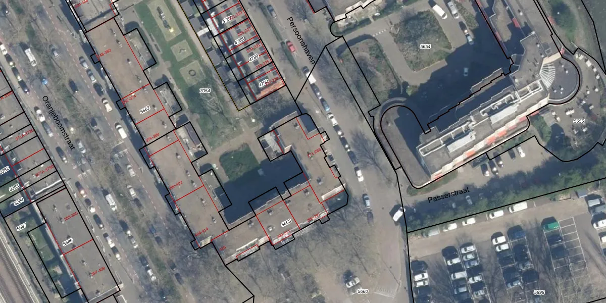 Het perceel waarop het adres ligt is RTD05-Q-5663. De afkorting 'RTD05' staat voor kadastrale gemeente Rotterdam. De gemiddelde perceeloppervlakte in de kadastrale gemeente Rotterdam is 1402,06 m². Dit perceel is met zijn 1500 m² dus groter dan gemiddeld. De grootste perceeloppervlakte in de kadastrale gemeente is 36,8 ha. De kleinste oppervlakte bedraagt 0 m². Op het perceel zijn 42 adressen aanwezig. In de Basisregistratie Kadaster (BRK) werden de grenzen van het perceel geregistreerd op 29-01-2003.