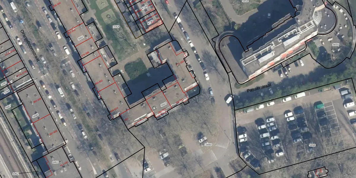 Het perceel waarop het adres ligt is RTD05-Q-5663. De afkorting 'RTD05' staat voor kadastrale gemeente Rotterdam. De gemiddelde perceeloppervlakte in de kadastrale gemeente Rotterdam is 1402,06 m². Dit perceel is met zijn 1500 m² dus groter dan gemiddeld. De grootste perceeloppervlakte in de kadastrale gemeente is 36,8 ha. De kleinste oppervlakte bedraagt 0 m². Op het perceel zijn 42 adressen aanwezig. De huidige grenzen van het perceel zijn digitaal in de Basisregistratie Kadaster (BRK) geregistreerd op 29-01-2003.