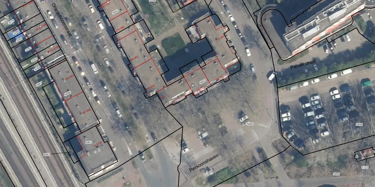 Het perceel waarop het adres ligt is RTD05-Q-5663. De afkorting 'RTD05' staat voor kadastrale gemeente Rotterdam. De gemiddelde perceeloppervlakte in de kadastrale gemeente Rotterdam is 1402,06 m². Dit perceel is met zijn 1500 m² dus groter dan gemiddeld. De grootste perceeloppervlakte in de kadastrale gemeente is 36,8 ha. De kleinste oppervlakte bedraagt 0 m². Er zijn 42 adressen aanwezig op het perceel. De laatste wijziging in het de Basisregistratie Kadaster (BRK) was op 29-01-2003.