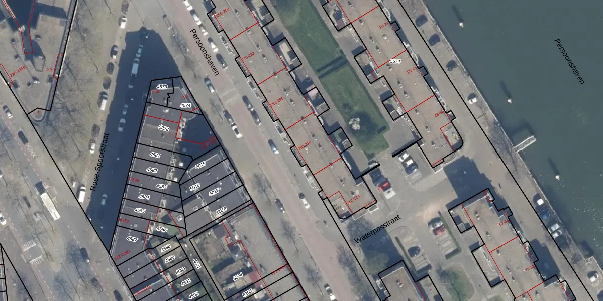 Het perceel waarop het adres ligt is RTD05-Q-5673. De afkorting 'RTD05' staat voor kadastrale gemeente Rotterdam. De gemiddelde perceeloppervlakte in de kadastrale gemeente Rotterdam is 1402,06 m². Dit perceel is met zijn 4727 m² dus groter dan gemiddeld. De grootste perceeloppervlakte in de kadastrale gemeente is 36,8 ha. De kleinste oppervlakte bedraagt 0 m². Er zijn 126 adressen aanwezig op het perceel. De huidige grenzen van het perceel zijn digitaal in de Basisregistratie Kadaster (BRK) geregistreerd op 14-07-2006.