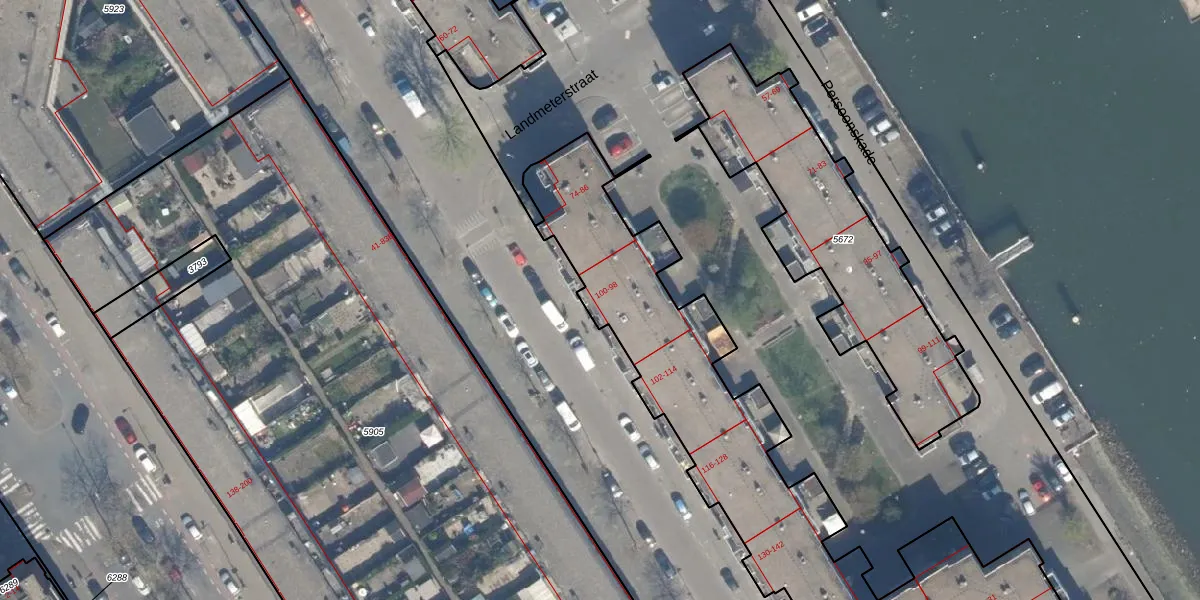 Het perceel waarop het adres ligt is RTD05-Q-5673. De afkorting 'RTD05' staat voor kadastrale gemeente Rotterdam. De gemiddelde perceeloppervlakte in de kadastrale gemeente Rotterdam is 1402,06 m². Dit perceel is met zijn 4727 m² dus groter dan gemiddeld. Het grootste perceel in de kadastrale gemeente is 36,8 ha. Het kleinste perceel heeft een oppervlakte van 0 m². Er zijn 126 adressen aanwezig op het perceel. De huidige grenzen van het perceel zijn digitaal in de Basisregistratie Kadaster (BRK) geregistreerd op 14-07-2006.