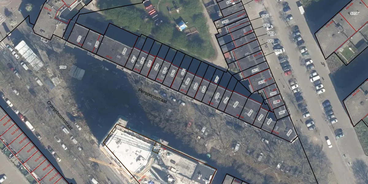 Het perceel waarop Persoonsstraat 74 staat heeft een oppervlakte van 96 m². Dit is een klein perceel. De perceeloppervlakte wordt geregistreerd door het Kadaster. Gedetailleerde informatie over de maten van dit perceel kunt u vinden in het rapport Kadastrale kaart met maatvoering van Persoonsstraat 74.