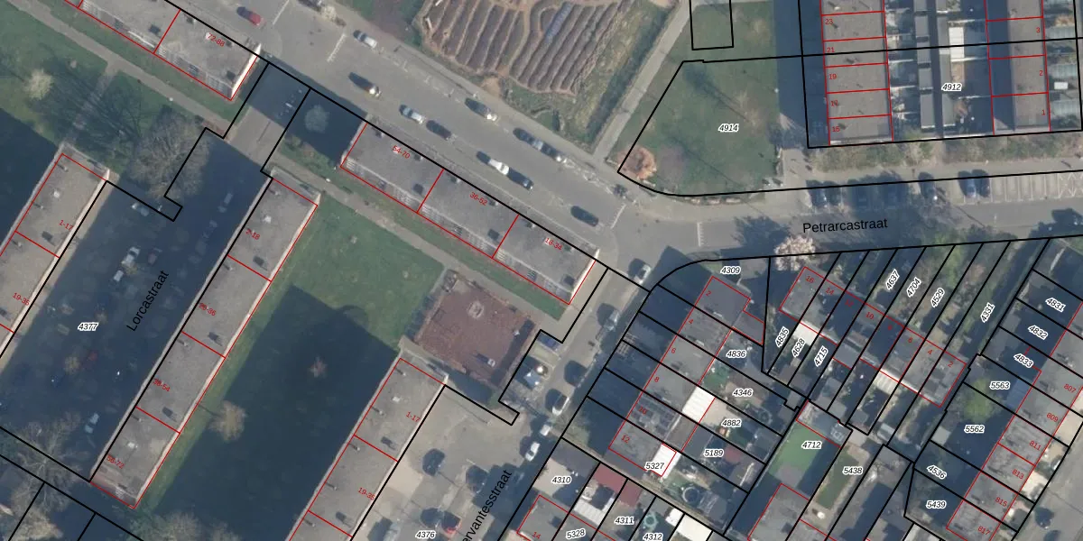 Het perceel waarop Petrarcastraat 28 staat heeft een oppervlakte van 1,9 ha. Dit is een zeer groot perceel. De perceeloppervlakte wordt geregistreerd door het Kadaster. Gedetailleerde informatie over de maten van dit perceel kunt u vinden in het rapport Kadastrale kaart met maatvoering van Petrarcastraat 28.