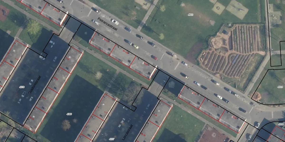 Het perceel waarop Petrarcastraat 84 staat heeft een oppervlakte van 1,9 ha. Dit is een zeer groot perceel. De perceeloppervlakte wordt geregistreerd door het Kadaster. Gedetailleerde informatie over de maten van dit perceel kunt u vinden in het rapport Kadastrale kaart met maatvoering van Petrarcastraat 84.