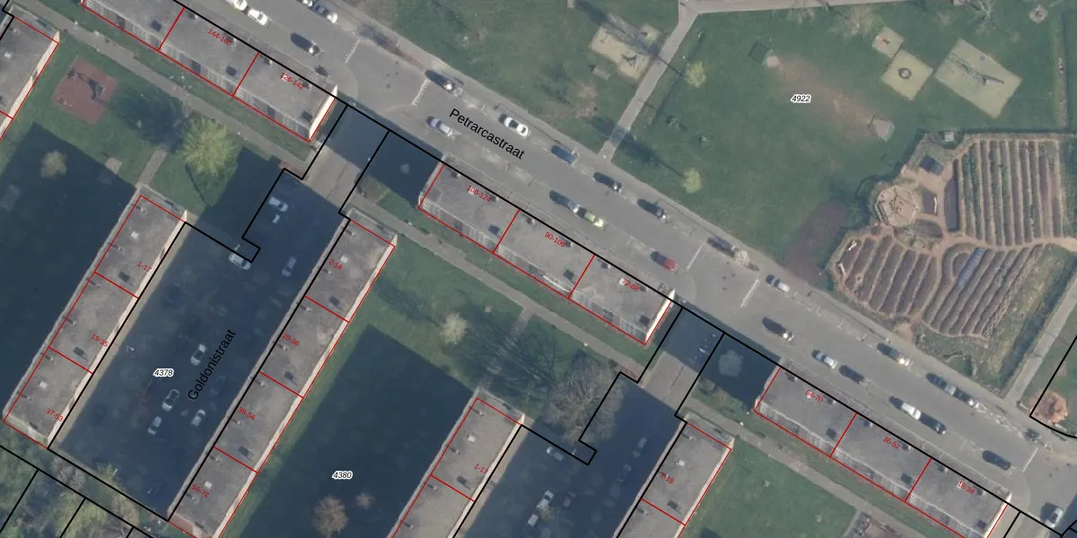 Het perceel waarop Petrarcastraat 94 staat heeft een oppervlakte van 1,9 ha. Dit is een zeer groot perceel. De perceeloppervlakte wordt geregistreerd door het Kadaster. Gedetailleerde informatie over de maten van dit perceel kunt u vinden in het rapport Kadastrale kaart met maatvoering van Petrarcastraat 94.