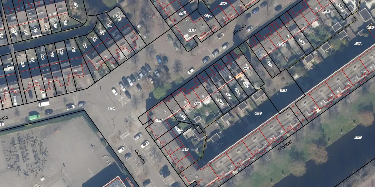 Het perceel waarop Piccolo 38 staat heeft een oppervlakte van 408 m². Dit is een groot perceel. De perceeloppervlakte wordt geregistreerd door het Kadaster. Gedetailleerde informatie over de maten van dit perceel kunt u vinden in het rapport Kadastrale kaart met maatvoering van Piccolo 38.