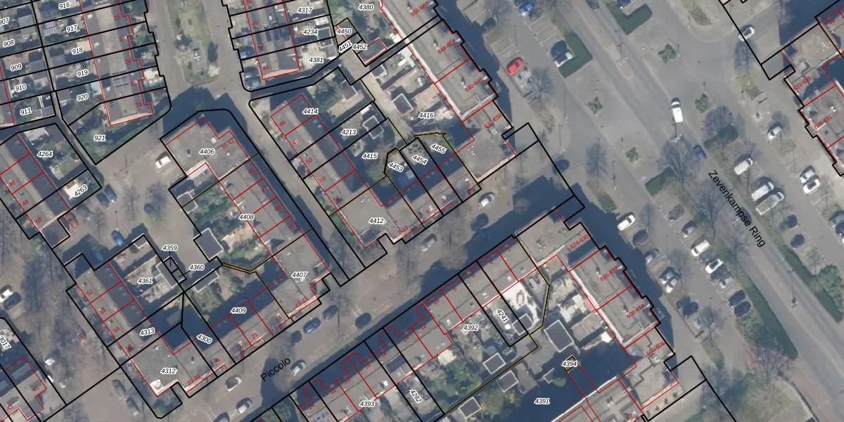 Piccolo 5 is gelegen op kadastraal perceel RTD13BA4453. Deze kadastrale aanduiding is uniek en wordt gebruikt door het Kadaster om eigendomsrechten en andere zakelijke rechten vast te leggen. Het perceel maakt onderdeel uit van de kadastrale gemeente Rotterdam.