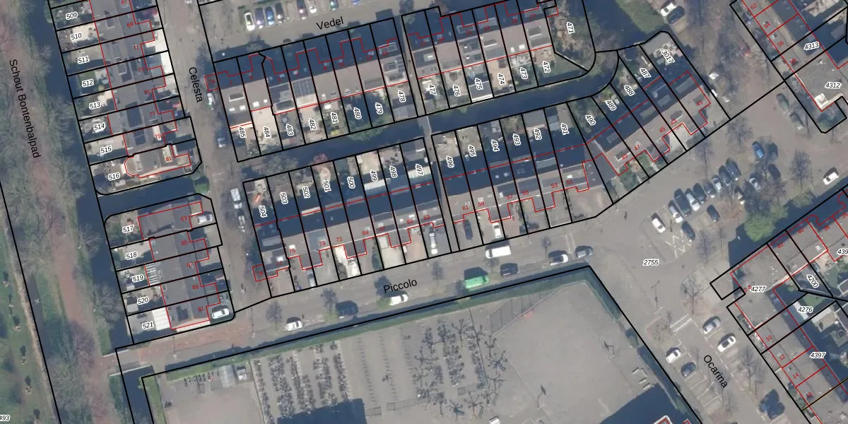 Het perceel waarop Piccolo 63 staat heeft een oppervlakte van 159 m². Dit is een middelgroot perceel. De perceeloppervlakte wordt geregistreerd door het Kadaster. Gedetailleerde informatie over de maten van dit perceel kunt u vinden in het rapport Kadastrale kaart met maatvoering van Piccolo 63.