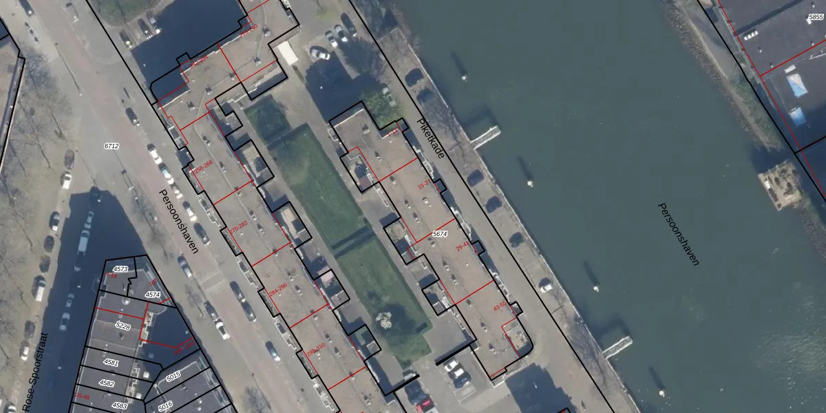 Het perceel waarop het adres ligt is RTD05-Q-5674. De afkorting 'RTD05' staat voor kadastrale gemeente Rotterdam. De gemiddelde perceelgrootte in Rotterdam is 1402,06 m². Dit perceel is kleiner: de perceeloppervlakte bedraagt 989 m². De grootste perceeloppervlakte in de kadastrale gemeente is 36,8 ha. De kleinste oppervlakte bedraagt 0 m². Op het perceel liggen in totaal 28 adressen. In de Basisregistratie Kadaster (BRK) werden de grenzen van het perceel geregistreerd op 29-01-2003.
