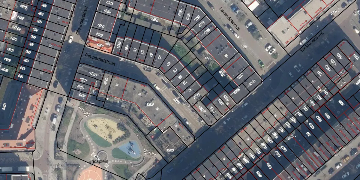 Pimpernelstraat 106 is gelegen op kadastraal perceel CLS00G92. Deze kadastrale aanduiding is uniek en wordt gebruikt door het Kadaster om eigendomsrechten en andere zakelijke rechten vast te leggen. Het perceel maakt onderdeel uit van de kadastrale gemeente Charlois.