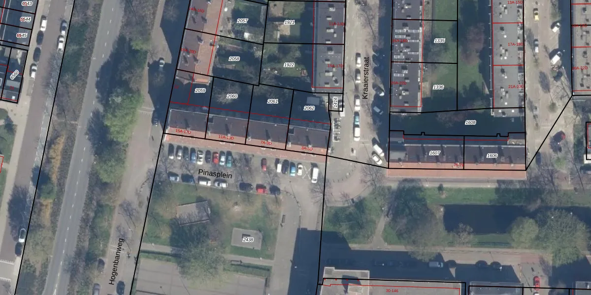 Pinasplein 5-C is gelegen op kadastraal perceel RTD10AA2062. Deze kadastrale aanduiding is uniek en wordt gebruikt door het Kadaster om eigendomsrechten en andere zakelijke rechten vast te leggen. Het perceel maakt onderdeel uit van de kadastrale gemeente Rotterdam.