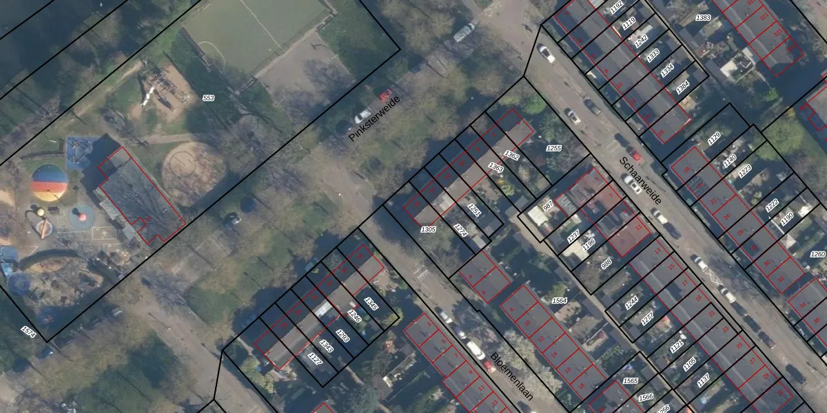 Gebruik de zoekbalk of klik op een perceel voor informatie over de adressen binnen dit perceel.