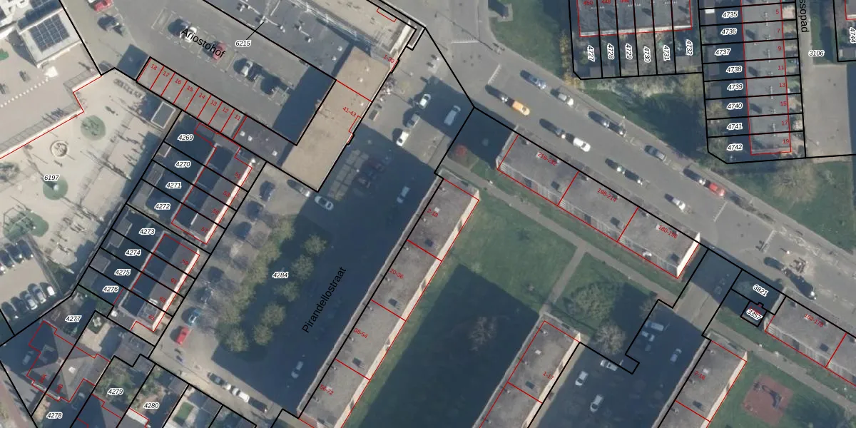 Het perceel waarop Pirandellostraat 16 staat heeft een oppervlakte van 1,9 ha. Dit is een zeer groot perceel. De perceeloppervlakte wordt geregistreerd door het Kadaster. Gedetailleerde informatie over de maten van dit perceel kunt u vinden in het rapport Kadastrale kaart met maatvoering van Pirandellostraat 16.