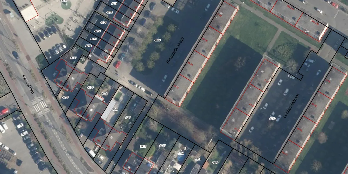 Het perceel waarop Pirandellostraat 72 staat heeft een oppervlakte van 1,9 ha. Dit is een zeer groot perceel. De perceeloppervlakte wordt geregistreerd door het Kadaster. Gedetailleerde informatie over de maten van dit perceel kunt u vinden in het rapport Kadastrale kaart met maatvoering van Pirandellostraat 72.