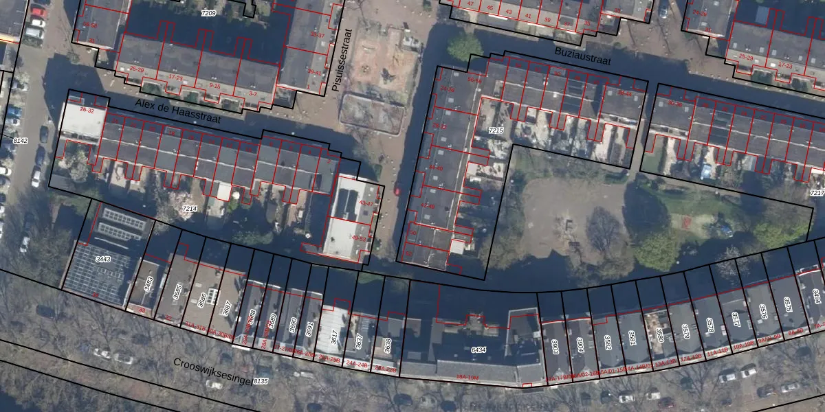 Het perceel waarop Pisuissestraat 46 staat heeft een oppervlakte van 1785 m². Dit is een zeer groot perceel. De perceeloppervlakte wordt geregistreerd door het Kadaster. Gedetailleerde informatie over de maten van dit perceel kunt u vinden in het rapport Kadastrale kaart met maatvoering van Pisuissestraat 46.
