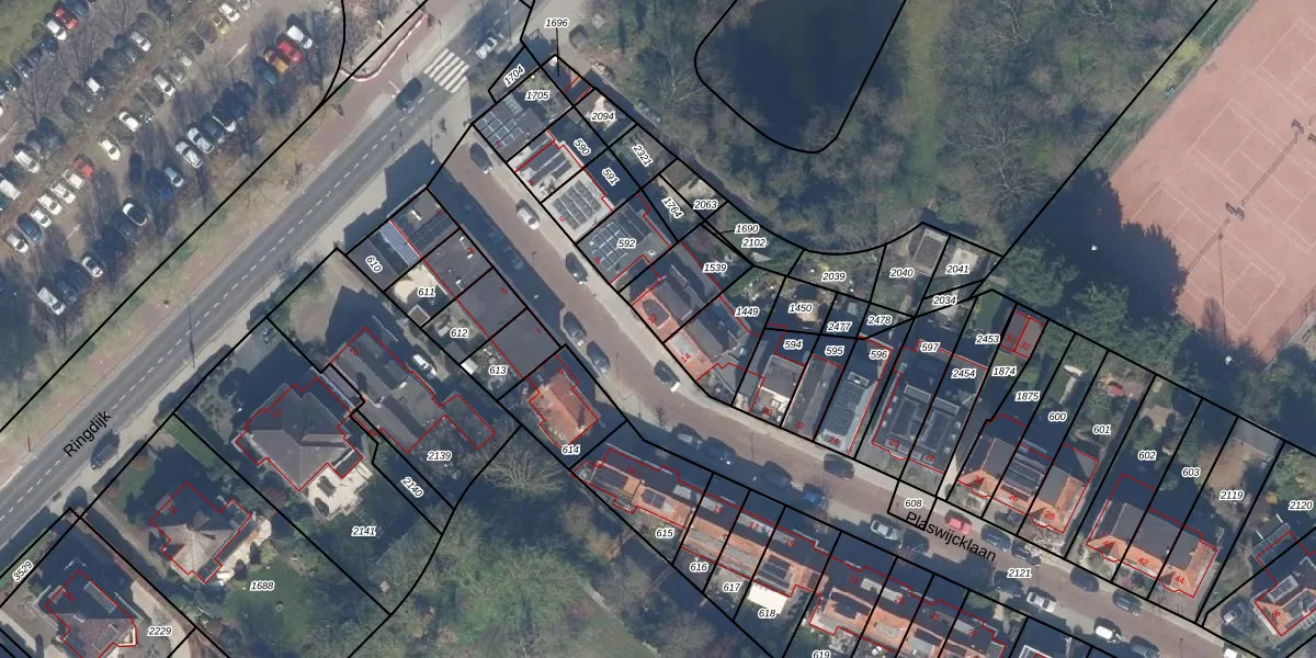 Het perceel waarop Plaswijcklaan 12 staat heeft een oppervlakte van 177 m². Dit is een middelgroot perceel. De perceeloppervlakte wordt geregistreerd door het Kadaster. Gedetailleerde informatie over de maten van dit perceel kunt u vinden in het rapport Kadastrale kaart met maatvoering van Plaswijcklaan 12.