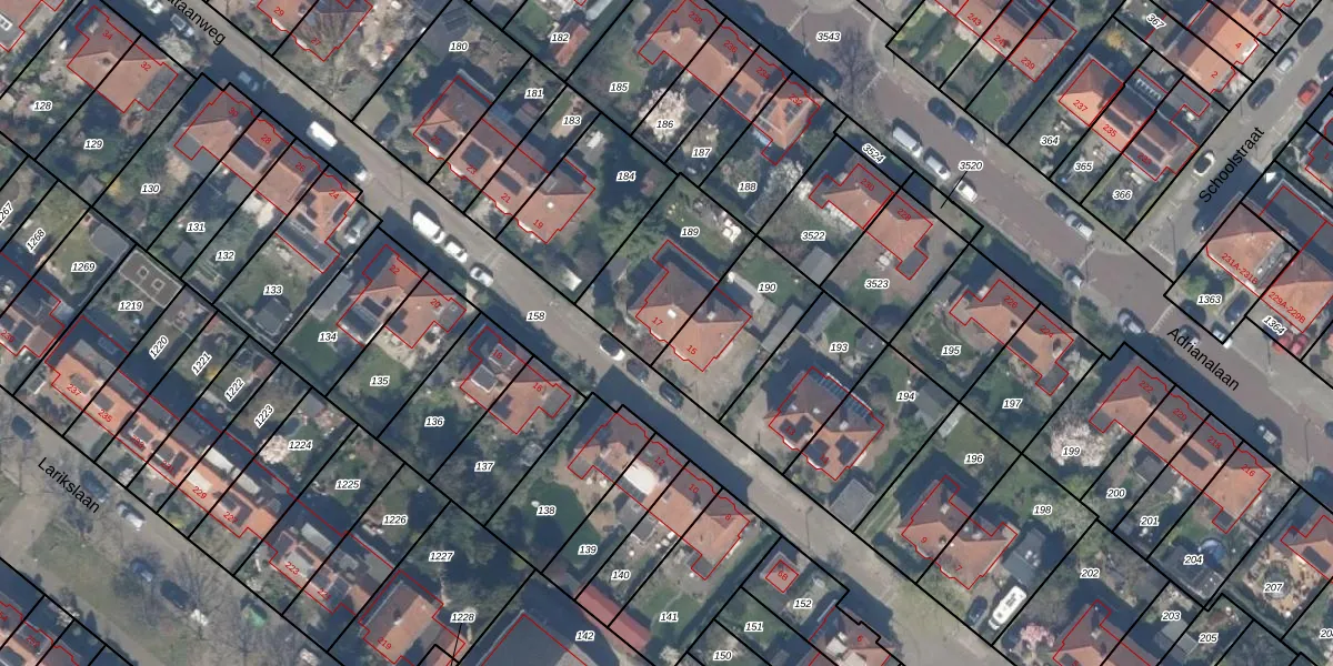Gebruik de zoekbalk of klik op een perceel voor informatie over de adressen binnen dit perceel.