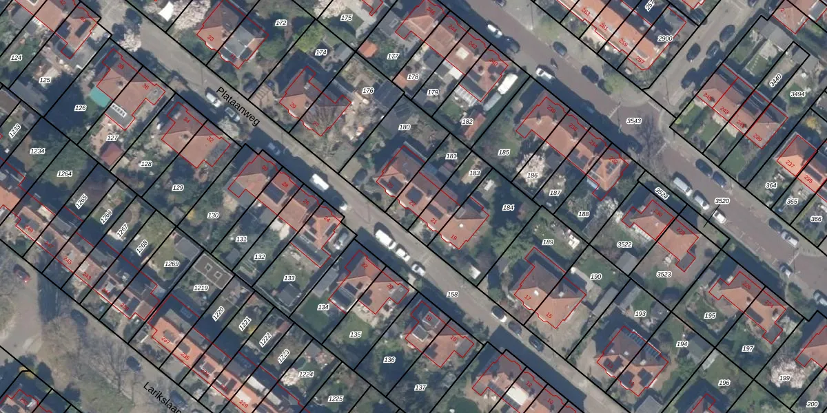 Gebruik de zoekbalk of klik op een perceel voor informatie over de adressen binnen dit perceel.