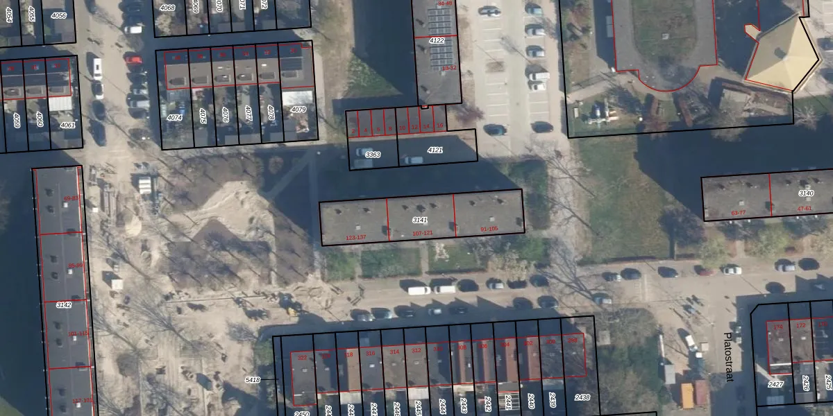 Platostraat 107 is gelegen op kadastraal perceel ISM01C3141. Deze kadastrale aanduiding is uniek en wordt gebruikt door het Kadaster om eigendomsrechten en andere zakelijke rechten vast te leggen. Het perceel maakt onderdeel uit van de kadastrale gemeente IJsselmonde.