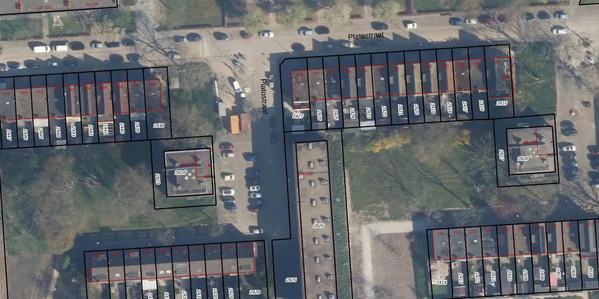 Het perceel waarop Platostraat 176 staat heeft een oppervlakte van 608 m². Dit is een groot perceel. De perceeloppervlakte wordt geregistreerd door het Kadaster. Gedetailleerde informatie over de maten van dit perceel kunt u vinden in het rapport Kadastrale kaart met maatvoering van Platostraat 176.
