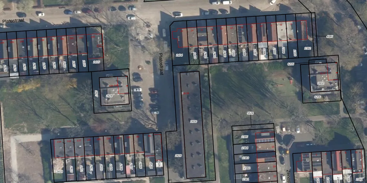 Het perceel waarop Platostraat 60 staat heeft een oppervlakte van 608 m². Dit is een groot perceel. De perceeloppervlakte wordt geregistreerd door het Kadaster. Gedetailleerde informatie over de maten van dit perceel kunt u vinden in het rapport Kadastrale kaart met maatvoering van Platostraat 60.