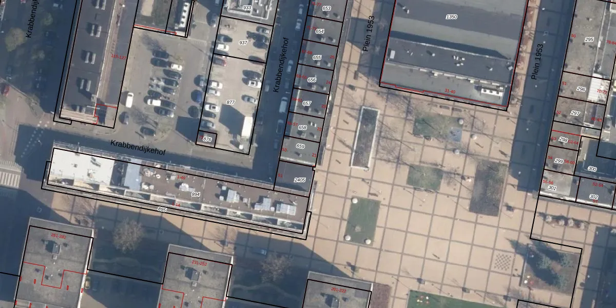 Het perceel waarop Plein 1953 21 staat heeft een oppervlakte van 97 m². Dit is een klein perceel. De perceeloppervlakte wordt geregistreerd door het Kadaster. Gedetailleerde informatie over de maten van dit perceel kunt u vinden in het rapport Kadastrale kaart met maatvoering van Plein 1953 21.