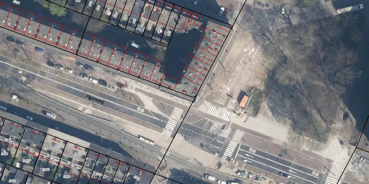Pleinweg 1-A is gelegen op kadastraal perceel CLS00H1214. Deze kadastrale aanduiding is uniek en wordt gebruikt door het Kadaster om eigendomsrechten en andere zakelijke rechten vast te leggen. Het perceel maakt onderdeel uit van de kadastrale gemeente Charlois.