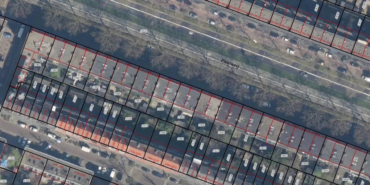 Pleinweg 104-B is gelegen op kadastraal perceel CLS00H2989. Deze kadastrale aanduiding is uniek en wordt gebruikt door het Kadaster om eigendomsrechten en andere zakelijke rechten vast te leggen. Het perceel maakt onderdeel uit van de kadastrale gemeente Charlois.