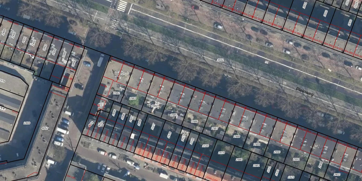 Pleinweg 120-B is gelegen op kadastraal perceel CLS00H2985. Deze kadastrale aanduiding is uniek en wordt gebruikt door het Kadaster om eigendomsrechten en andere zakelijke rechten vast te leggen. Het perceel maakt onderdeel uit van de kadastrale gemeente Charlois.