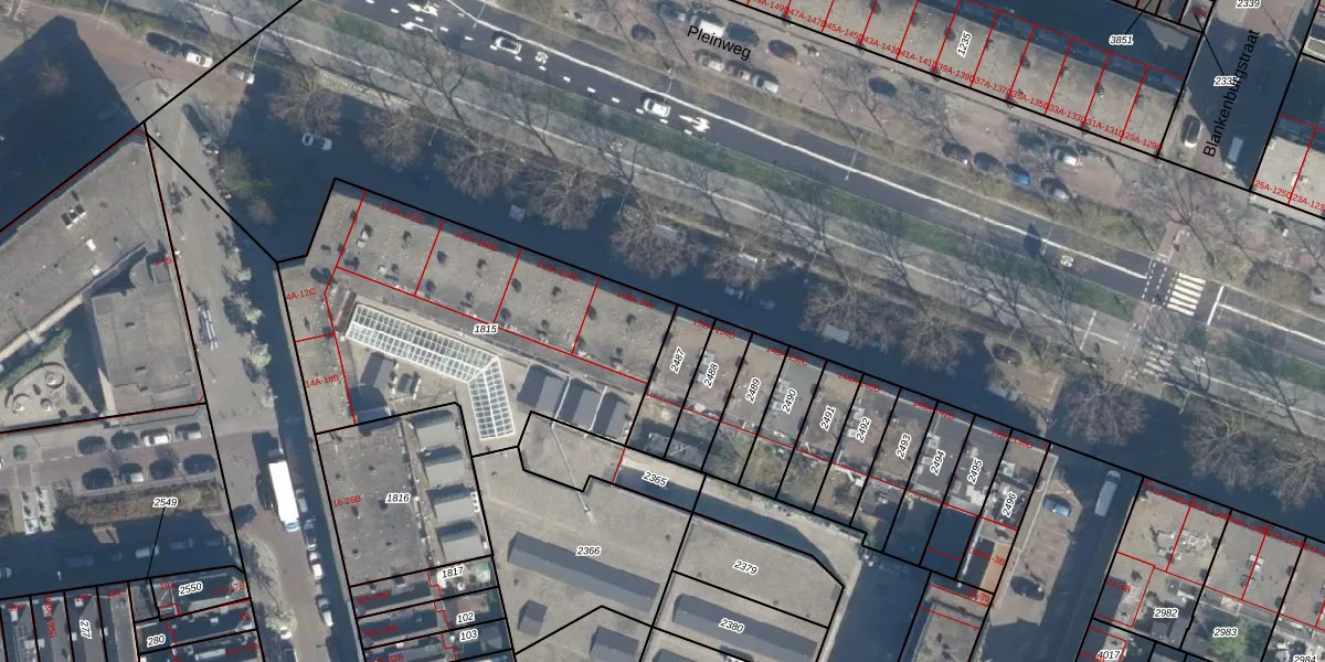 Pleinweg 156-C is gelegen op kadastraal perceel CLS00H1815. Deze kadastrale aanduiding is uniek en wordt gebruikt door het Kadaster om eigendomsrechten en andere zakelijke rechten vast te leggen. Het perceel maakt onderdeel uit van de kadastrale gemeente Charlois.