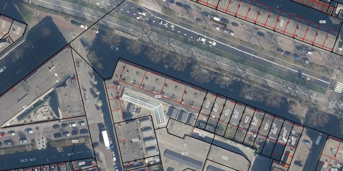 Pleinweg 164-B is gelegen op kadastraal perceel CLS00H1815. Deze kadastrale aanduiding is uniek en wordt gebruikt door het Kadaster om eigendomsrechten en andere zakelijke rechten vast te leggen. Het perceel maakt onderdeel uit van de kadastrale gemeente Charlois.