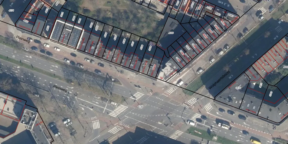 Pleinweg 187-B is gelegen op kadastraal perceel CLS00E3328. Deze kadastrale aanduiding is uniek en wordt gebruikt door het Kadaster om eigendomsrechten en andere zakelijke rechten vast te leggen. Het perceel maakt onderdeel uit van de kadastrale gemeente Charlois.
