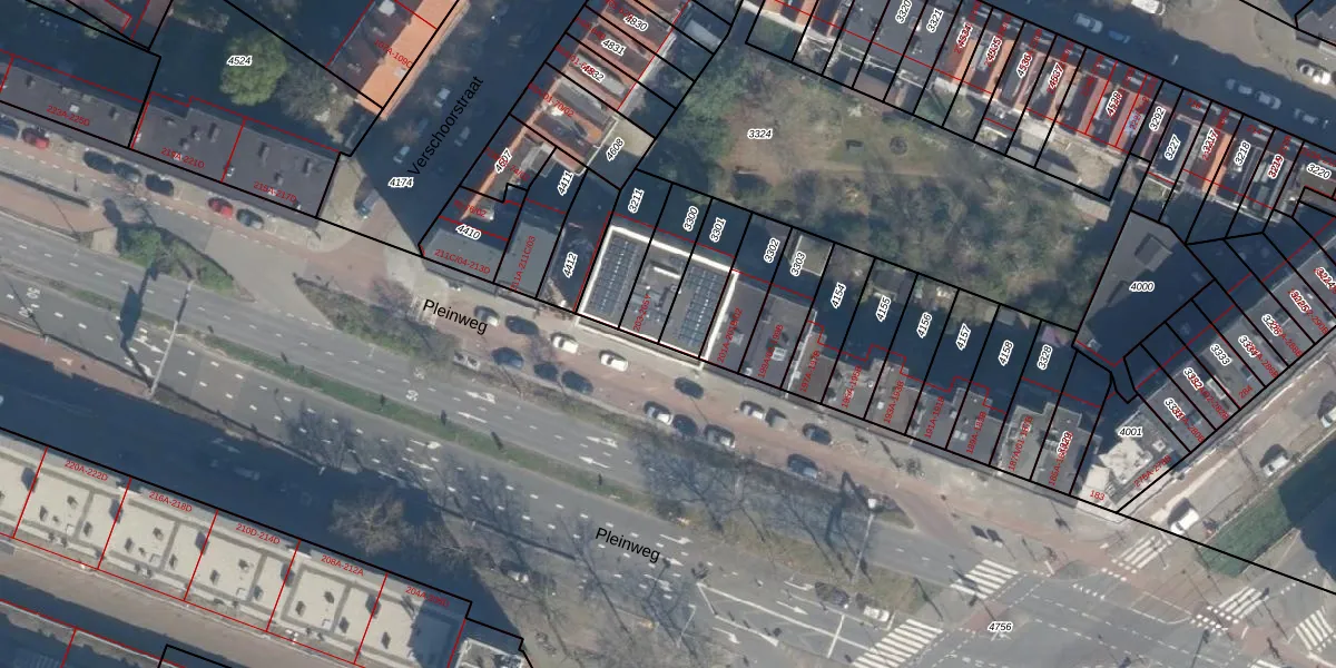 Pleinweg 203 is gelegen op kadastraal perceel CLS00E3301. Deze kadastrale aanduiding is uniek en wordt gebruikt door het Kadaster om eigendomsrechten en andere zakelijke rechten vast te leggen. Het perceel maakt onderdeel uit van de kadastrale gemeente Charlois.