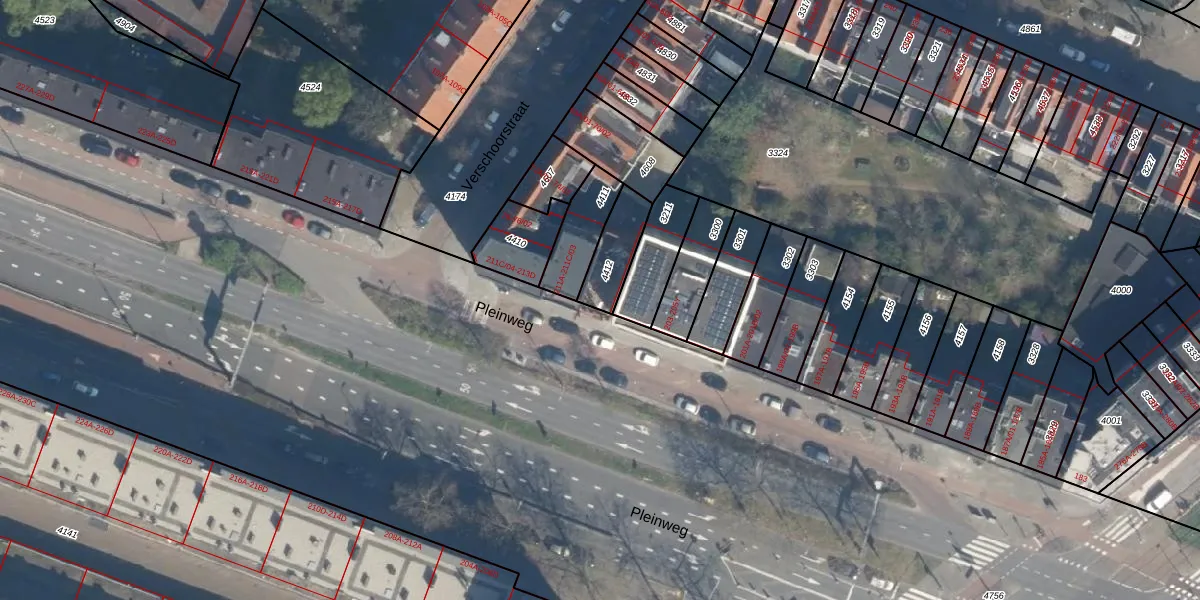 Pleinweg 209-E is gelegen op kadastraal perceel CLS00E4412. Deze kadastrale aanduiding is uniek en wordt gebruikt door het Kadaster om eigendomsrechten en andere zakelijke rechten vast te leggen. Het perceel maakt onderdeel uit van de kadastrale gemeente Charlois.