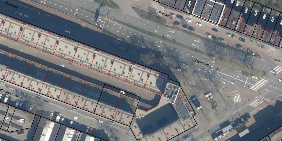Pleinweg 212-A is gelegen op kadastraal perceel CLS00E4141. Deze kadastrale aanduiding is uniek en wordt gebruikt door het Kadaster om eigendomsrechten en andere zakelijke rechten vast te leggen. Het perceel maakt onderdeel uit van de kadastrale gemeente Charlois.