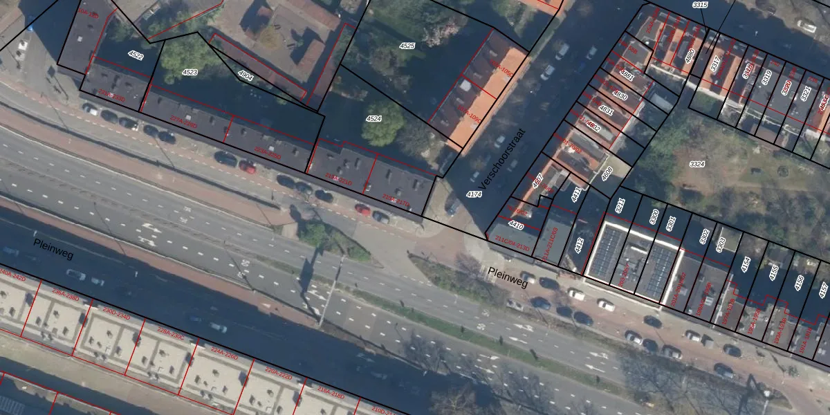 Pleinweg 215-C is gelegen op kadastraal perceel CLS00E4524. Deze kadastrale aanduiding is uniek en wordt gebruikt door het Kadaster om eigendomsrechten en andere zakelijke rechten vast te leggen. Het perceel maakt onderdeel uit van de kadastrale gemeente Charlois.