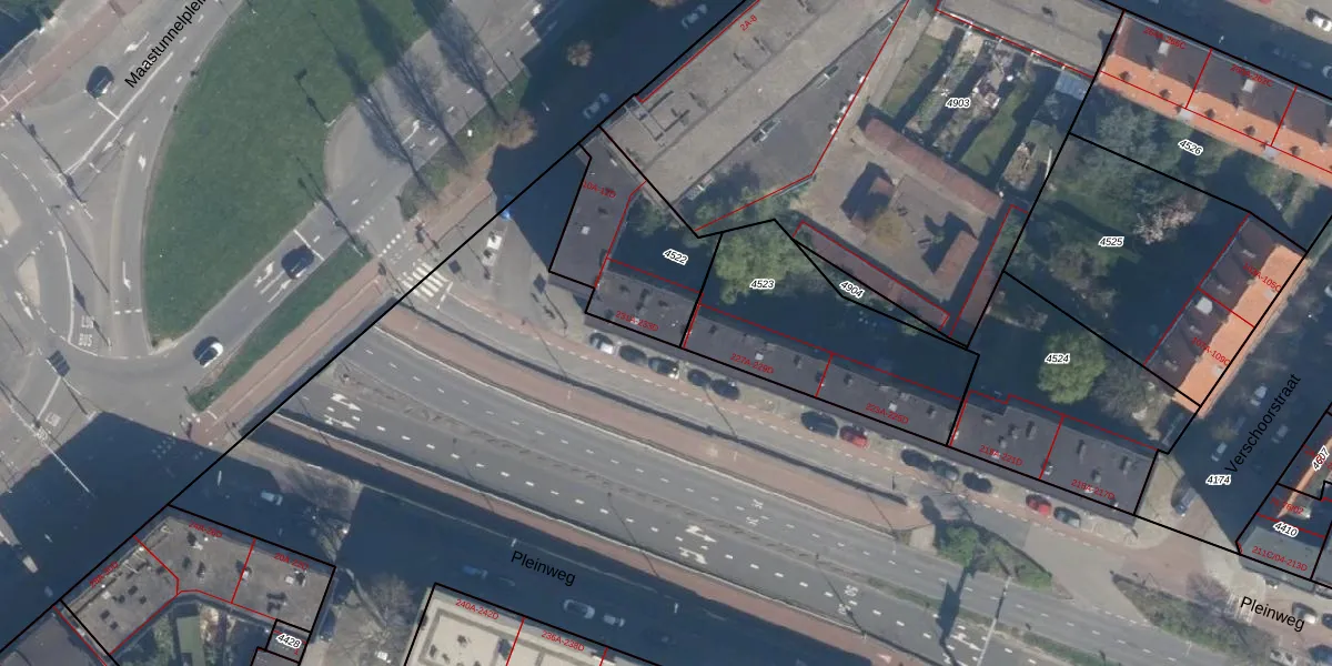 Pleinweg 231-B is gelegen op kadastraal perceel CLS00E4522. Deze kadastrale aanduiding is uniek en wordt gebruikt door het Kadaster om eigendomsrechten en andere zakelijke rechten vast te leggen. Het perceel maakt onderdeel uit van de kadastrale gemeente Charlois.