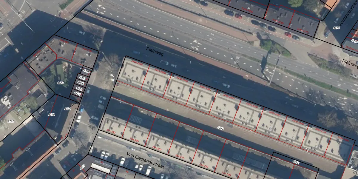 Pleinweg 232-A is gelegen op kadastraal perceel CLS00E4141. Deze kadastrale aanduiding is uniek en wordt gebruikt door het Kadaster om eigendomsrechten en andere zakelijke rechten vast te leggen. Het perceel maakt onderdeel uit van de kadastrale gemeente Charlois.
